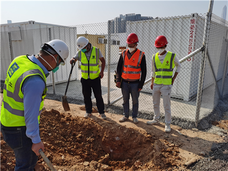 在中建科工的統(tǒng)籌領(lǐng)導下,工勘集團火速馳援中央援港應急醫(yī)院建設,負責項目勘察、控制測量、地形圖測繪、地下管線探測、航測三維建模、軟基處理設計及基坑支護設計等工作。