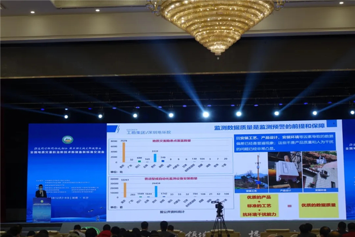 地環(huán)院作為企業(yè)代表,在大會(huì)上發(fā)表了《普適型設(shè)備監(jiān)測(cè)數(shù)據(jù)質(zhì)量的因素分析與解決方案》的主題演講。地環(huán)院高級(jí)產(chǎn)品經(jīng)理黃麒麟從普適型監(jiān)測(cè)項(xiàng)目的開(kāi)展情況、監(jiān)測(cè)預(yù)警數(shù)據(jù)質(zhì)量的影響因素及解決思路等三方面展開(kāi)分享,為地災(zāi)監(jiān)測(cè)中遇到的數(shù)據(jù)解讀困難提供思路與解決建議。