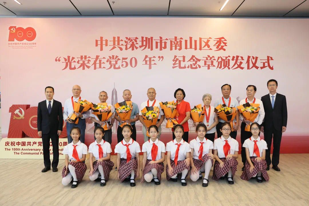 為慶祝中國共產(chǎn)黨成立100周年,6月25日,南山區(qū)委理論學(xué)習(xí)中心組(擴(kuò)大)舉行現(xiàn)場(chǎng)學(xué)習(xí)活動(dòng)。南山區(qū)委書記曾湃,區(qū)委副書記、區(qū)長(zhǎng)黃湘岳,區(qū)政協(xié)主席陳軍等領(lǐng)導(dǎo)出席活動(dòng),并向黨齡超過50年的老黨員代表頒發(fā)“光榮在黨50年”紀(jì)念章,激勵(lì)全體黨員牢記囑托、感恩奮進(jìn),為特區(qū)改革創(chuàng)新再出發(fā)砥礪前行。工勘黨委沈孝宇、巫資碩、孫愫文3名老黨員獲頒“光榮在黨50年”紀(jì)念章,巫資碩同志代表上臺(tái),接受頒獎(jiǎng)。